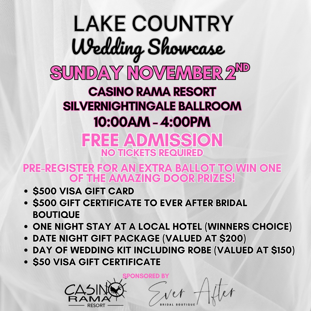 Pre-register for an EXTRA ballot to win amazing prizes like a $500 VISA gift card, a $500 gift certificate to Ever After Bridal Boutique, hotel stays, gift packages & more!