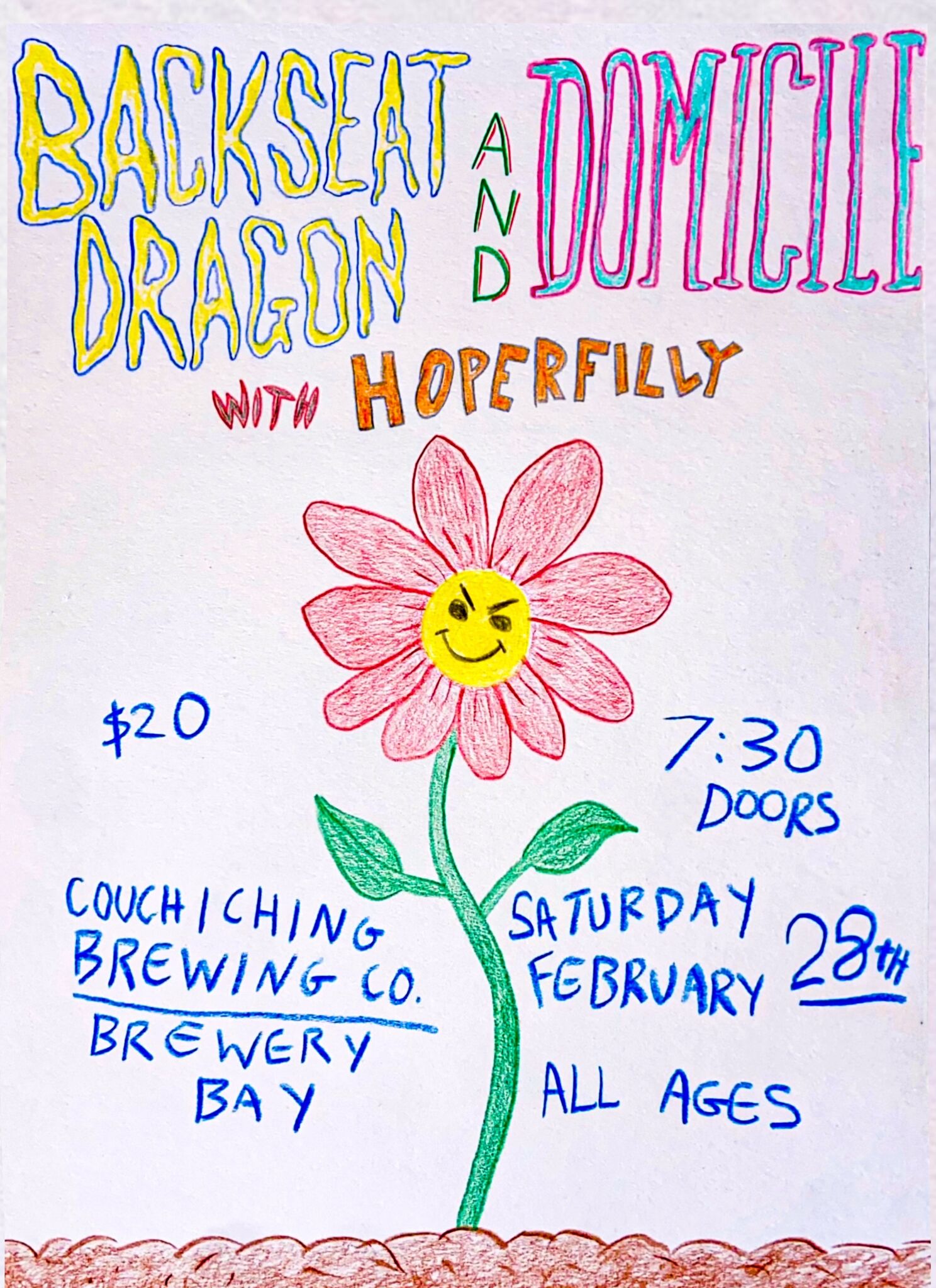 Live music from rock bands Backseat Dragon, Domicile and Hoperfilly upstairs at Couchiching Brewing Co.