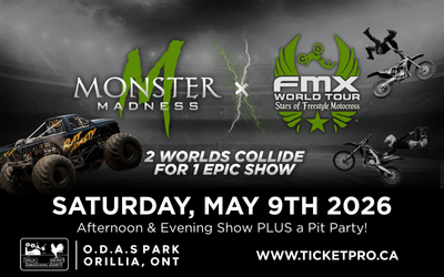 MONSTER MADNESS TOUR: Rat Nasty Monster Madness Champion returns with the biggest Monster Trucks in the world. Including Canada’s #1 female Monster Truck SABOTAGE. Monster Madness will have you on your feet as you watch the 10,000 pounds of MONSTER TRUCKS soar through the air! The competition will include tricks like wheelies, racing, monster truck freestyle and more!