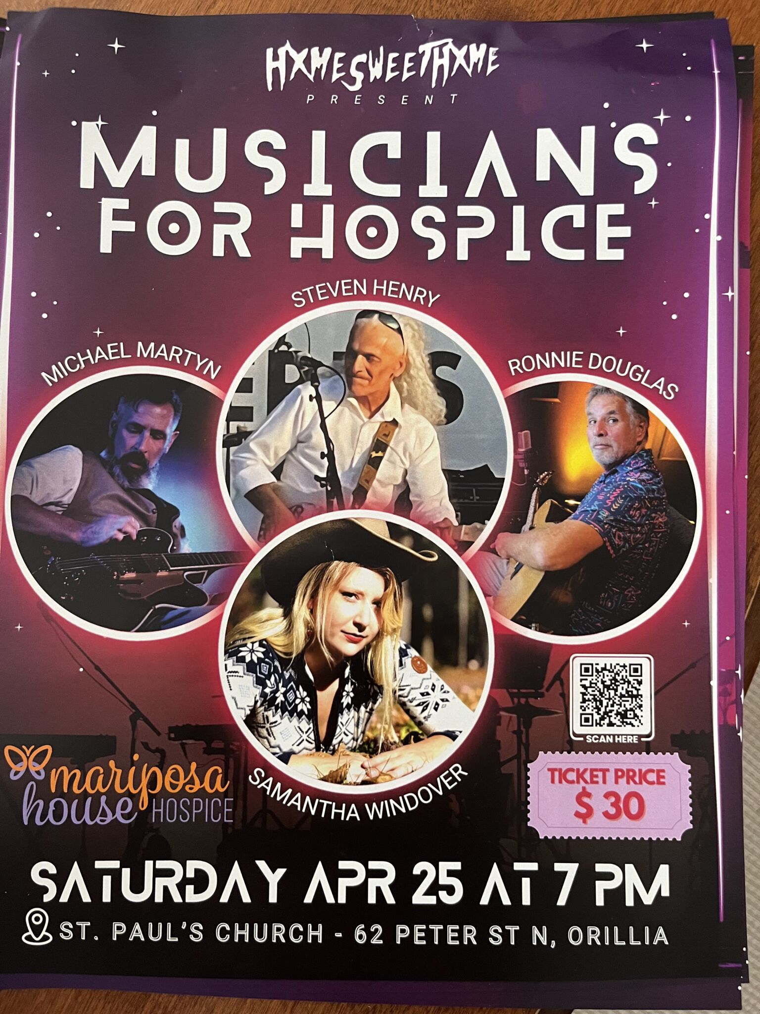 Acoustic show with Samantha Windover, Steve Henry, Ronnie Douglas ,and Michael Martyn, raising funds for the Mariposa House Hospice.