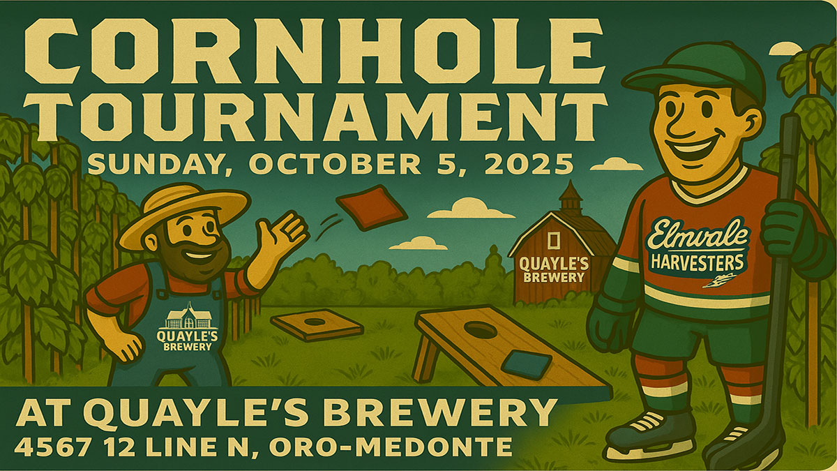 Get ready for a fun-filled day of cornhole, farm-fresh craft beer, delicious food, and community spirit! Grab a partner and join us at Quayle’s Brewery for an exciting, friendly competition in support of the Elmvale Harvesters’ inaugural OEHL season as they chase the Allen Cup — Canada’s National Senior AAA Championship.