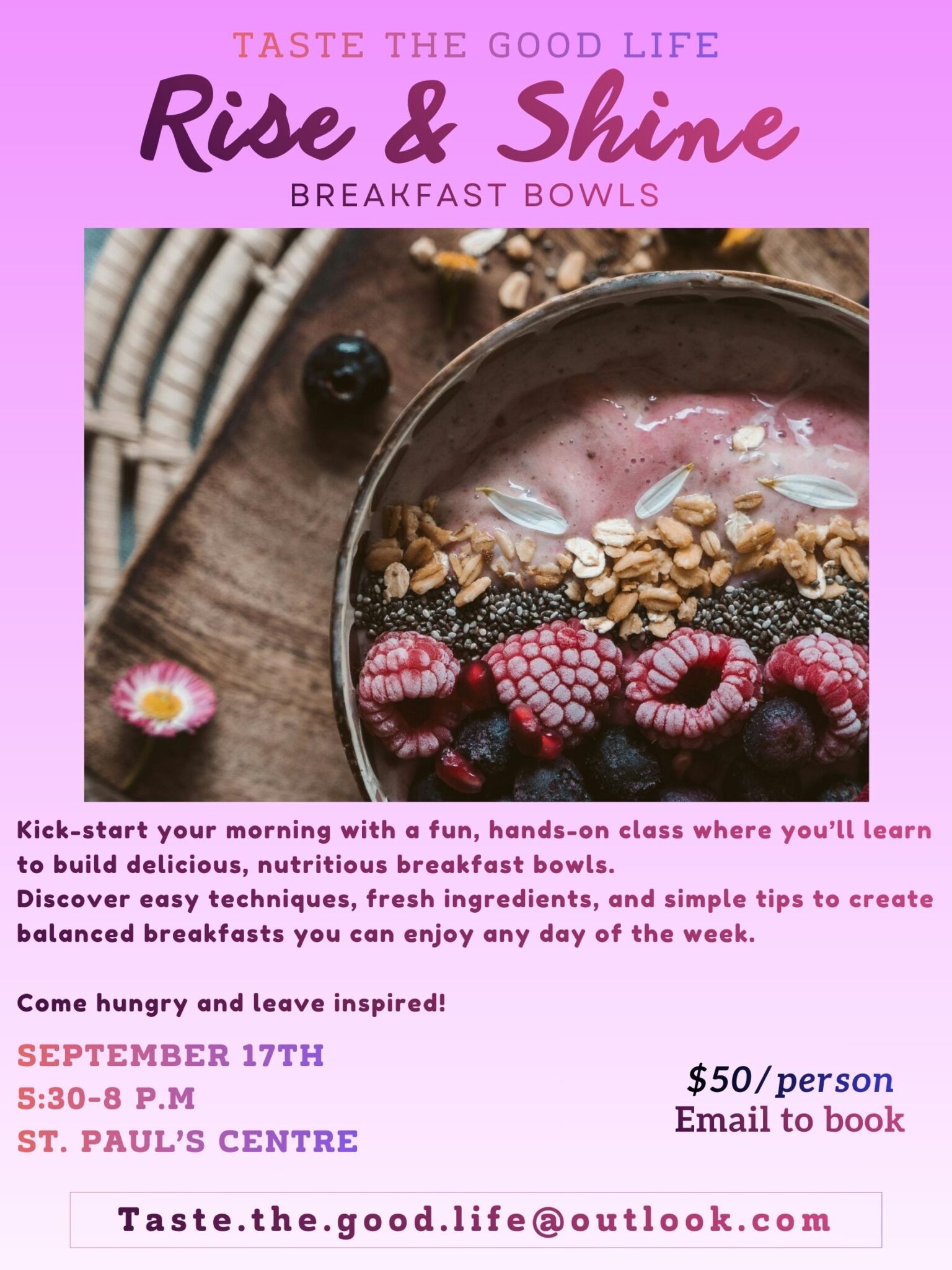 Start your day deliciously with our hands-on breakfast bowl class! Learn to craft vibrant, nutritious bowls, filled with fresh fruits, wholesome and flavorful toppings. Guided by a professional chef, you’ll discover tips and techniques to make breakfast both beautiful and satisfying.
