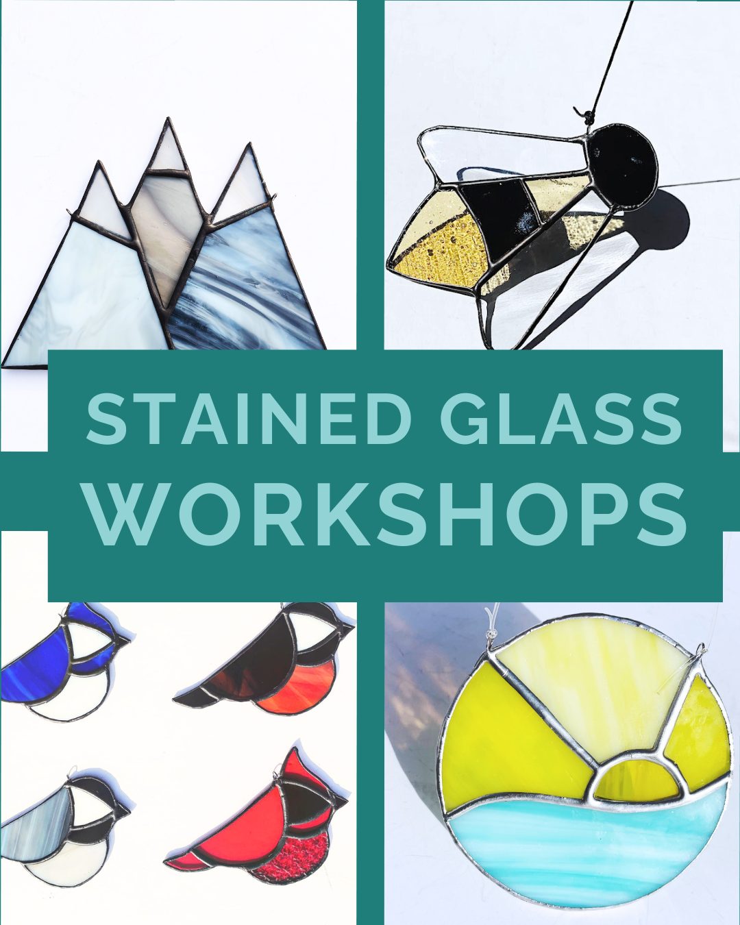 My original tried and true Intro to Stained Glass Class. If you are looking for a fun and fool proof way to try out stained glass this is it! I promise you will leave happy and proud of yourself with a pretty new suncatcher.