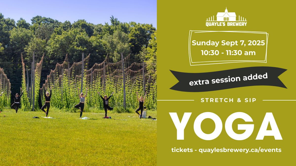 Our next Stretch and Sip is Sunday September 7th at Quayle’s Brewery. 10:30–11:30 yoga followed by a refreshing pint.