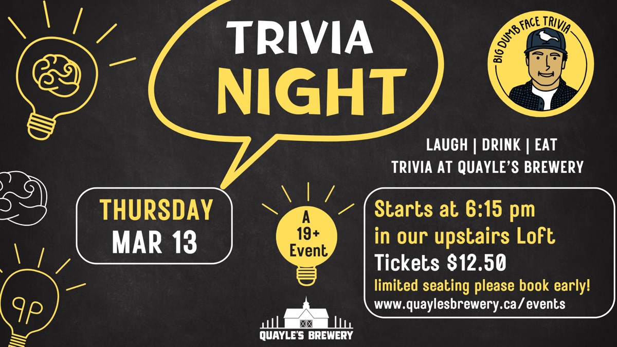 Come join us at Quayle’s Brewery for Trivia with Adam Crockatt of Big Dumb Face Trivia.
