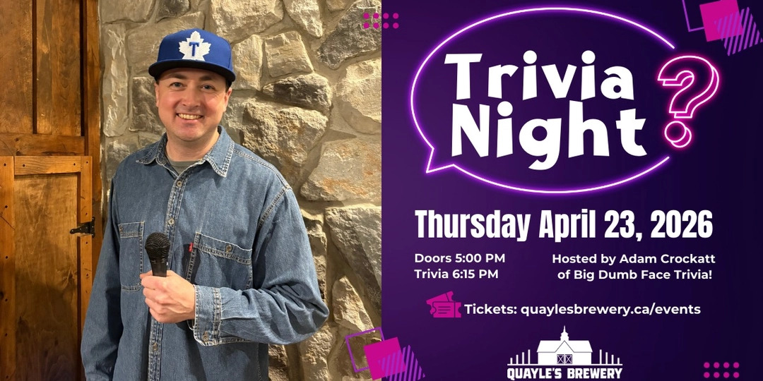 Adam returns to Quayle’s with his always entertaining (and sometimes hilarious) questions—so grab your crew and get your tickets before they’re gone! Did we mention the ticket price include a full pour of beer or glass of wine?