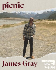 Find out more »The famous James Gray returns to PICNIC for #thursdaytunes ! We can't wait to jam out with James and all of you this Thursday from 7pm.