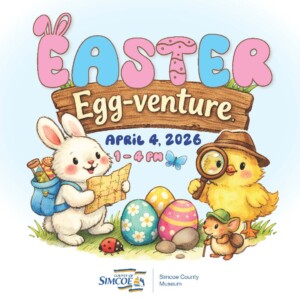 Find out more »Hop on over to the Simcoe County Museum for a fun-filled Easter Egg-venture the whole family will enjoy! This outdoor celebration invites visitors of all ages to explore, create, and discover. Families can take part in a cheerful Easter craft, then follow our festive Easter trail, complete with a special prize at the end. To make sure everyone has the best experience, we’ve designed two trails; one perfect for younger children and another with added challenges for older kids.