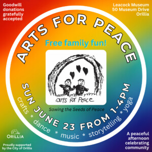 Find out more »After a 5 year hiatus, Arts for Peace will once again bring folks together for a peaceful summer afternoon of music, crafts, dance, storytelling, yoga, bubbles and community. This will be the 36th gathering of its kind on the shores of Lake Couchiching. Started by members of Project Ploughshares Orillia, a non-governmental organization that worked with churches, governments and civilian groups to prevent war and promote peace, the sunny festival on the grounds of the Stephen Leacock Museum has been…