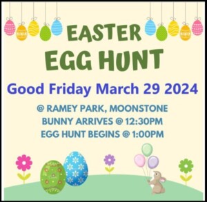 Come visit the Easter Bunny! Egg hunt will start at 1pm SHARP! Any cash donations greatly appreciated for future events.