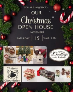 Find out more »Mark your calendar. This Saturday, we are hosting our open house! Longer hours... We will be open from 9-6 giving you more time to shop for your holiday chocolate gifts