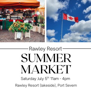 Find out more »Join us Saturday July 5th from 11am-4pm for a day of shopping local on the waterfront at Rawley Resort in Port Severn! Shop Canadian made with over 15 local vendors and artists, there’s something for everyone.