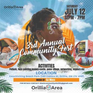 Find out more »Hey Orillia, let’s gather! Join us for our 3rd Annual Community Fest, a day to simply be together. On July 12th, from 12PM until 7 PM, Couchiching Beach Park will be our shared space. We’ll have music, food to share, games for everyone, and just a chance to connect. No big sales pitch, just us, as a community, spending a day enjoying each other’s company. Come be a part of it! For More Information: https://blackcommunityoforillia.org/