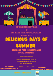 Find out more »Orillia’s First-Ever Food & Dessert Festival!Join us for an unforgettable afternoon filled with delicious food, decadent desserts, and unique local artisans. This exciting event is completely free—everyone is welcome!Head to Mississaga Street, from Peter to Albert, right in the heart of beautiful downtown Orillia. Don’t miss out on this sweet celebration Saturday June 28, 10am - 3pm.