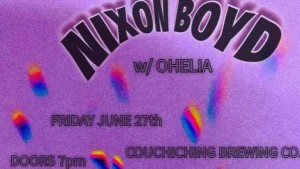 Find out more »Time & Location Jun 27, 2025, 7:00 p.m. – 10:00 p.m. Higher Ground (Brewery Bay 2nd Floor), 162 Mississaga St E, Orillia, ON L3V 1V9, Canada About the event Nixon Boyd (of Hollerado) and his band will be performing songs from his upcoming solo album Every Time We Turn A Corner, coming out later this year. With supporting local act OHELIA. ALL AGES Doors at 7:00PM. Tickets available now -- click here! Limited food menu available, plus six taps and…
