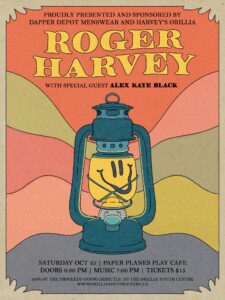 Saturday October 25, 2025 Roger Harvey with special guest Alex Kaye Black proudly presented by Dapper Depot Menswear and Harvey's Orillia Join us as we welcome Roger Harvey with special guest Alex Kaye Black. Roger Harvey resides in Nashville Tennessee . He is a folk singer from Pennsylvania. Raised in Erie County, Roger Harvey's songs reflect where he came from, where he's been & the better world he's determined to find. Joining Roger is Alex Kaye Black. Alex is a…