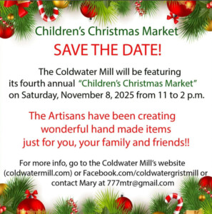 November 8th - The Children's Christmas Market, 11 to 2 p.m main and second floors at the Coldwater Mill