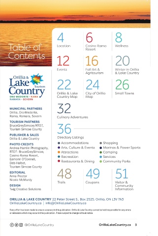 Every effort has been made to ensure accuracy in this publication. Orillia & Lake Country cannot be held responsible for any errors