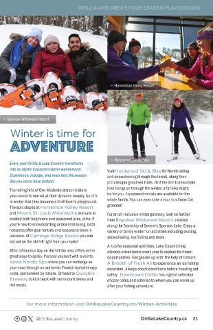 For more information visit OrilliaLakeCountry.ca/Fall-Tours For more information visit OrilliaLakeCountry.ca/Winter-Activities