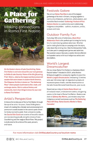 partnerships, and robust seasonal agriculture, Orillia Place” where people would meet to fish, trade, and the John Snake Memorial Event Grounds, year-round.