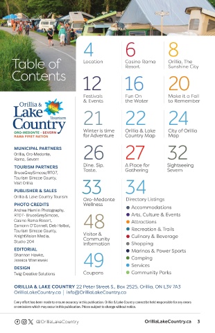 Available for download on Google Play and the App Store. Every effort has been made to ensure accuracy in this publication. Orillia & Lake Country cannot be held responsible for any errors